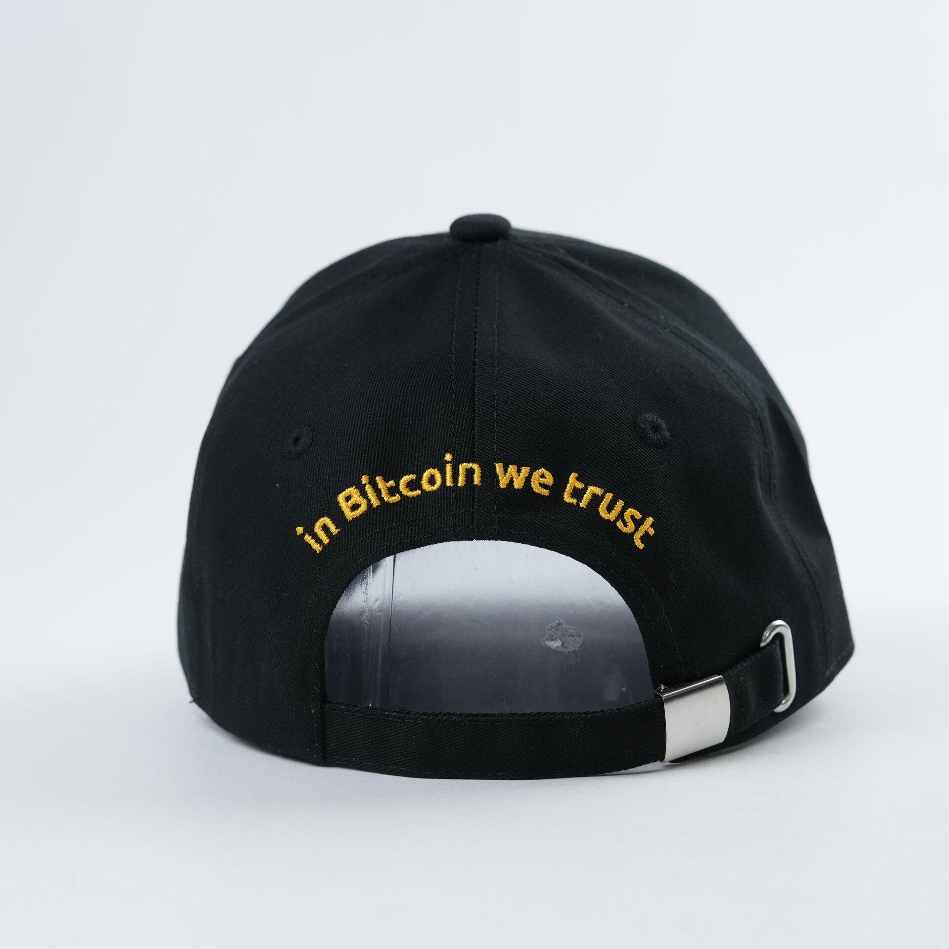 Stylisch, schlicht und 100% Bitcoin: Dieses schwarze Basecap ist das Must-Have für jeden Bitcoiner! Mit dem ikonischen Bitcoin-Logo auf der Vorderseite und dem Statement “In Bitcoin we trust” auf der Rückseite trägst du deine Überzeugung stolz nach außen. Perfekt für Meetups, Konferenzen oder den Alltag – zeige, dass du Teil der Bitcoin-Revolution bist!
