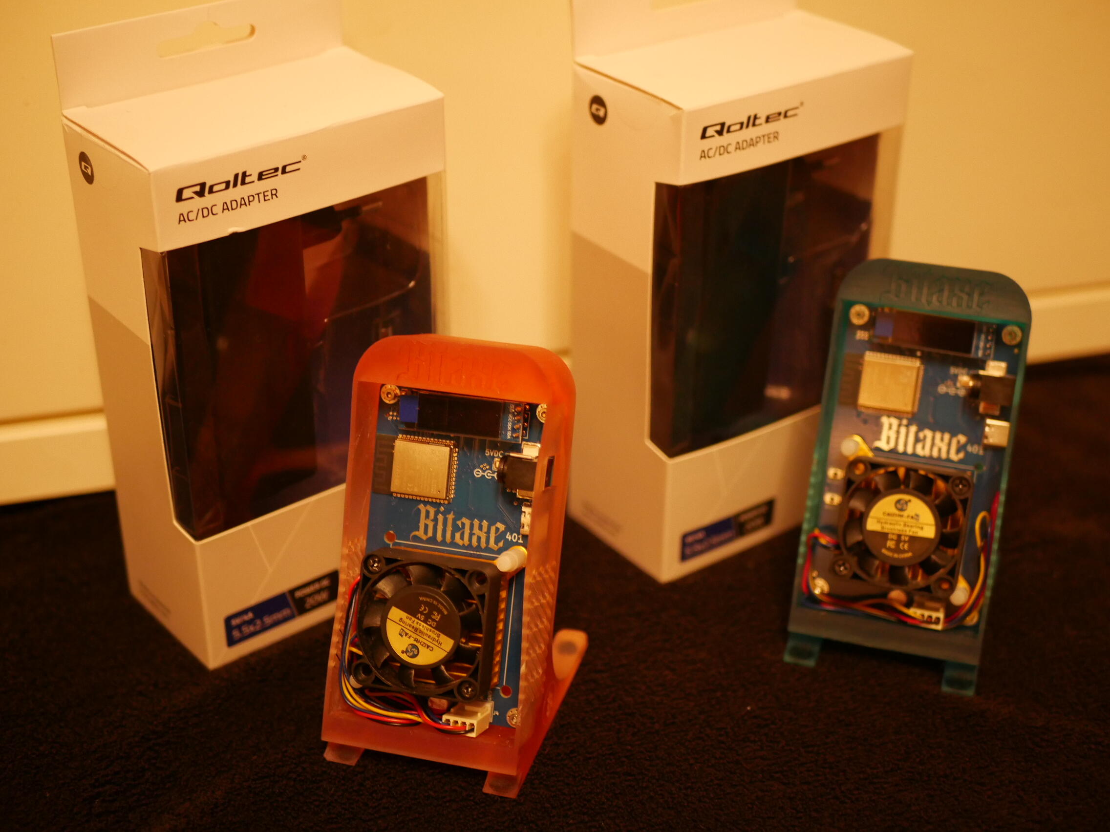 Zum Verkauf stehen insgesamt 4 von mir handgefertigte Bitaxe Supra Miner inklusive Netzteil. Verfügbare Gehäusefarben sind transparent blau und transparent orange (Harz, kein Filament).