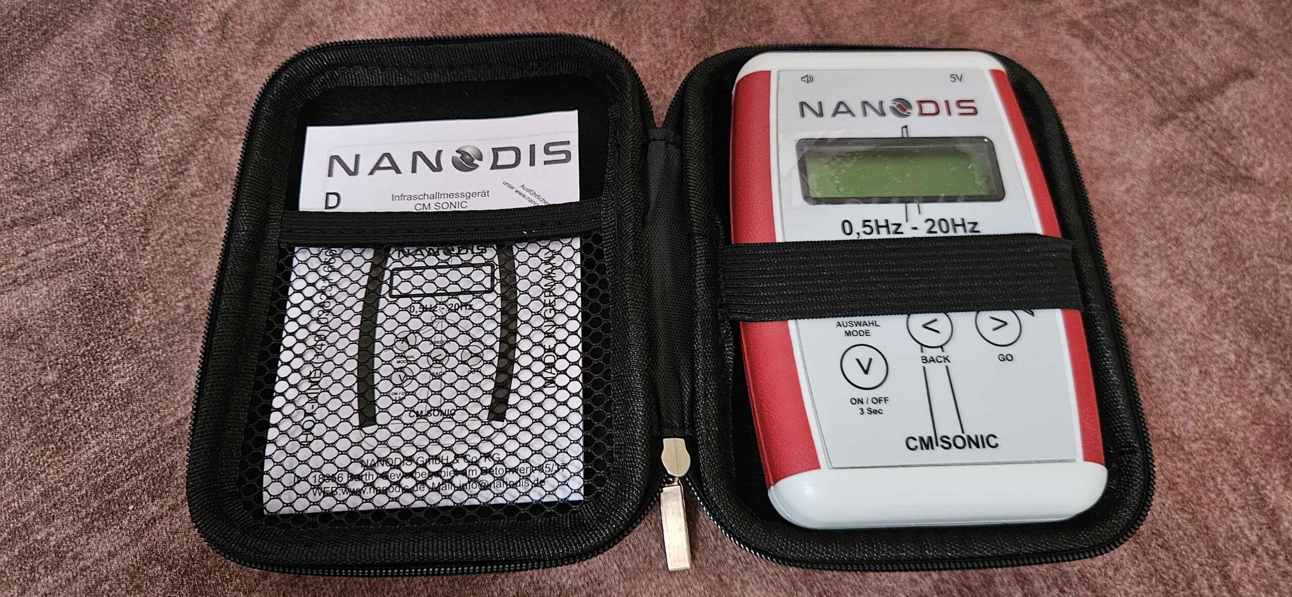 Dieses Gerät misst Infraschall im Bereich 0,5Hz – 20HZ, hat zudem eine 10h Aufnahmefunktion für diesen Bereich und kommt mit einem Stoßfesten Etui daher.