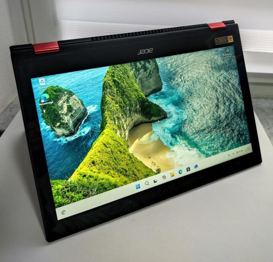 Der Laptop hat einen Touchscreen und lässt sich umklappen, man kann ihn wie ein Tablet nutzen (zum zeichnen z.B). Das Original Netzteil ist dabei.
