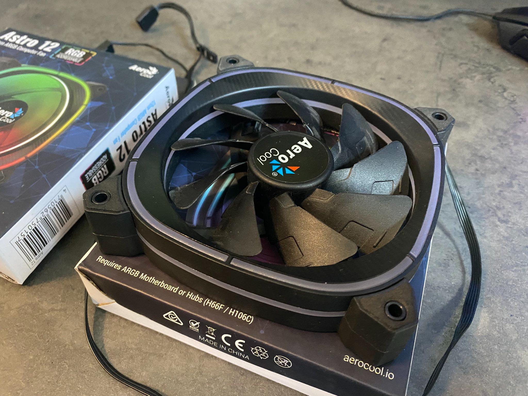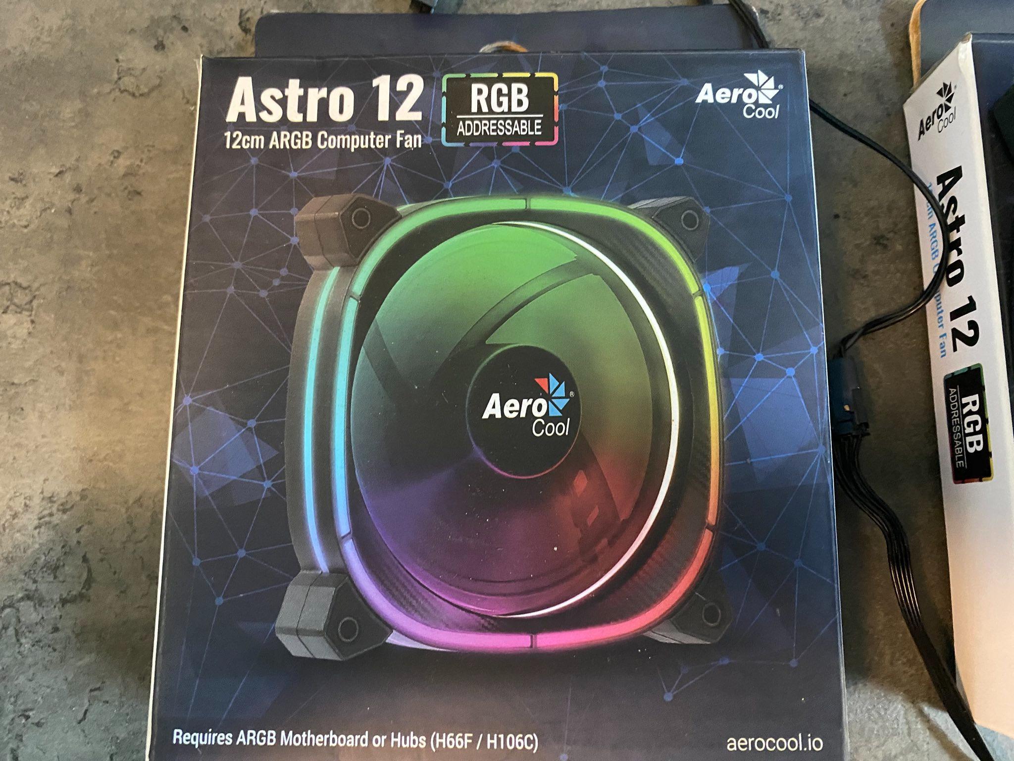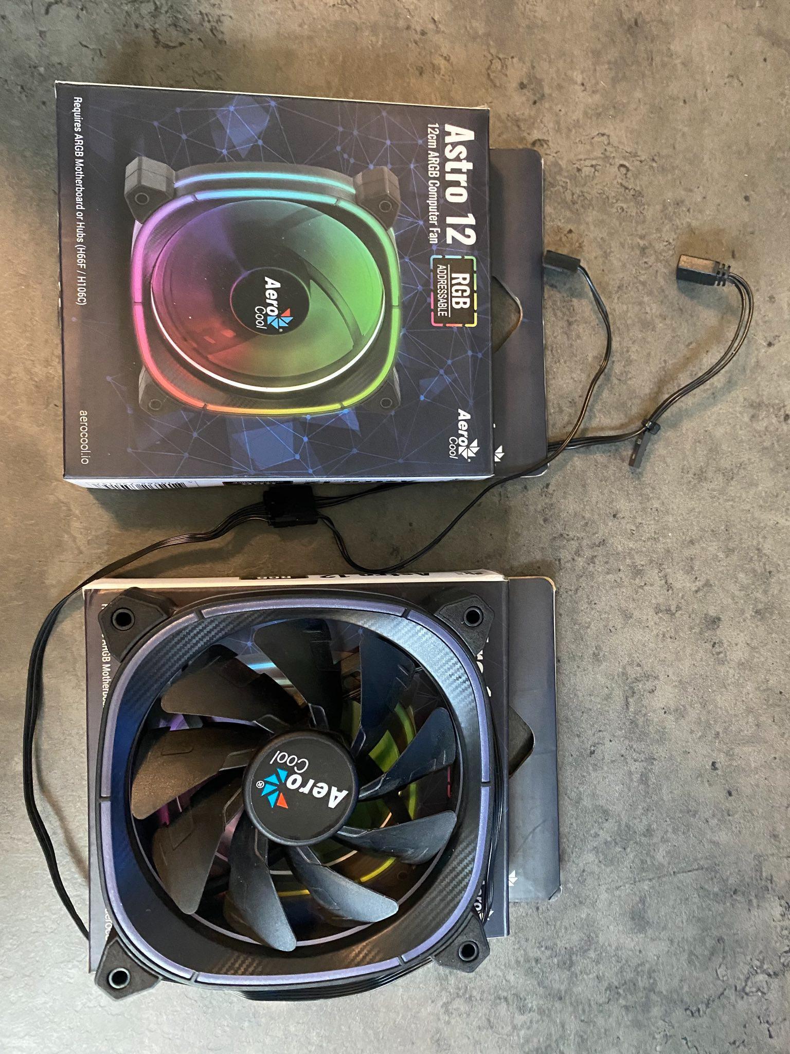 abzugeben sind diese 2 Aerocool 120mm Luefter. Haben mit diesem “squircle” design einen ganz coolen Look.