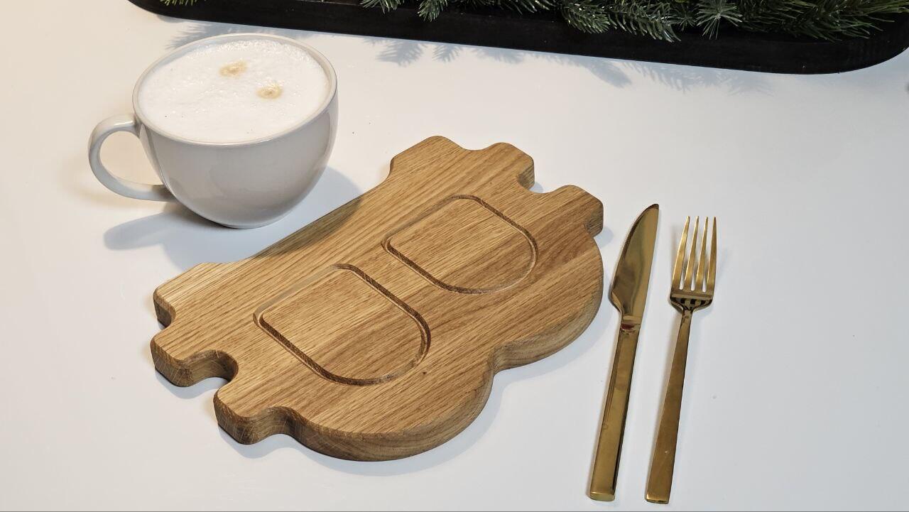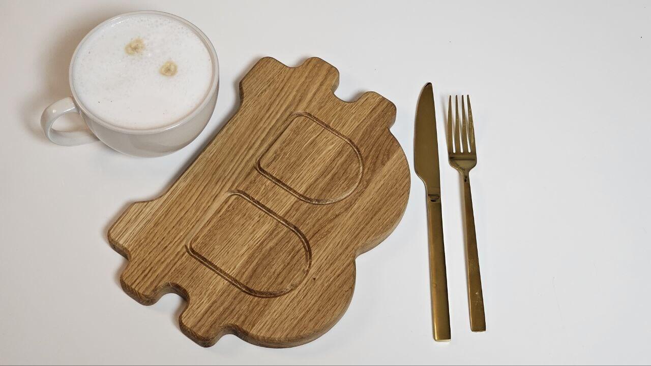ich biete euch handgefertigte Bitcoin Frühstücksbretter aus hochwertiger, massiver Eiche an.