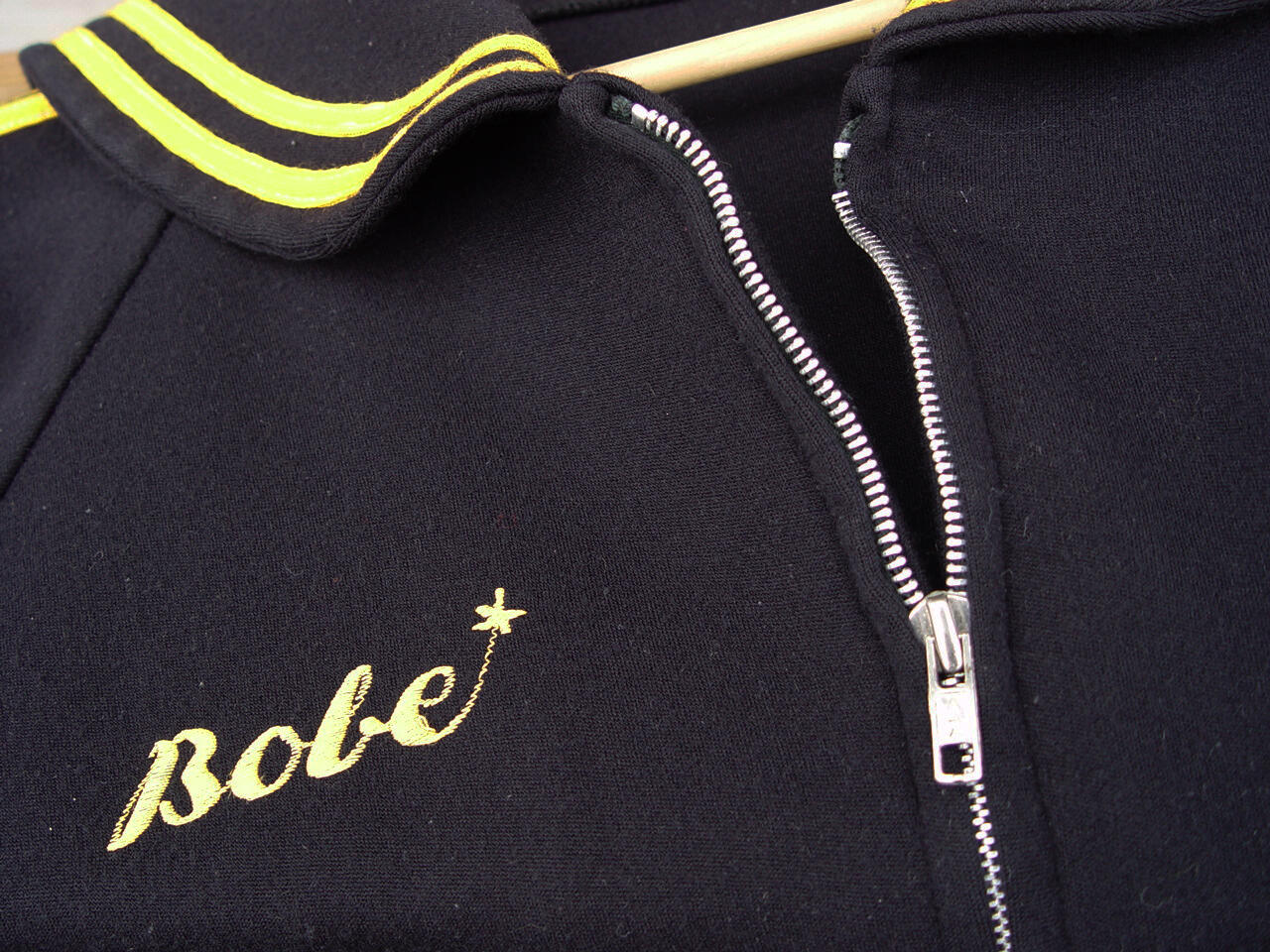 Mit vorderseitigem Reißverschluß. Kunstfaser. Wohl Größe M, d. h. schlanke Größe 50. Kein Herstelleretikett oder ähnliches. Reißverschluß bez. „AAA“. Getragen, jedoch sehr schöner Erhaltungszustand, gering angeschmutzt, keine Reparaturstellen o. ä.