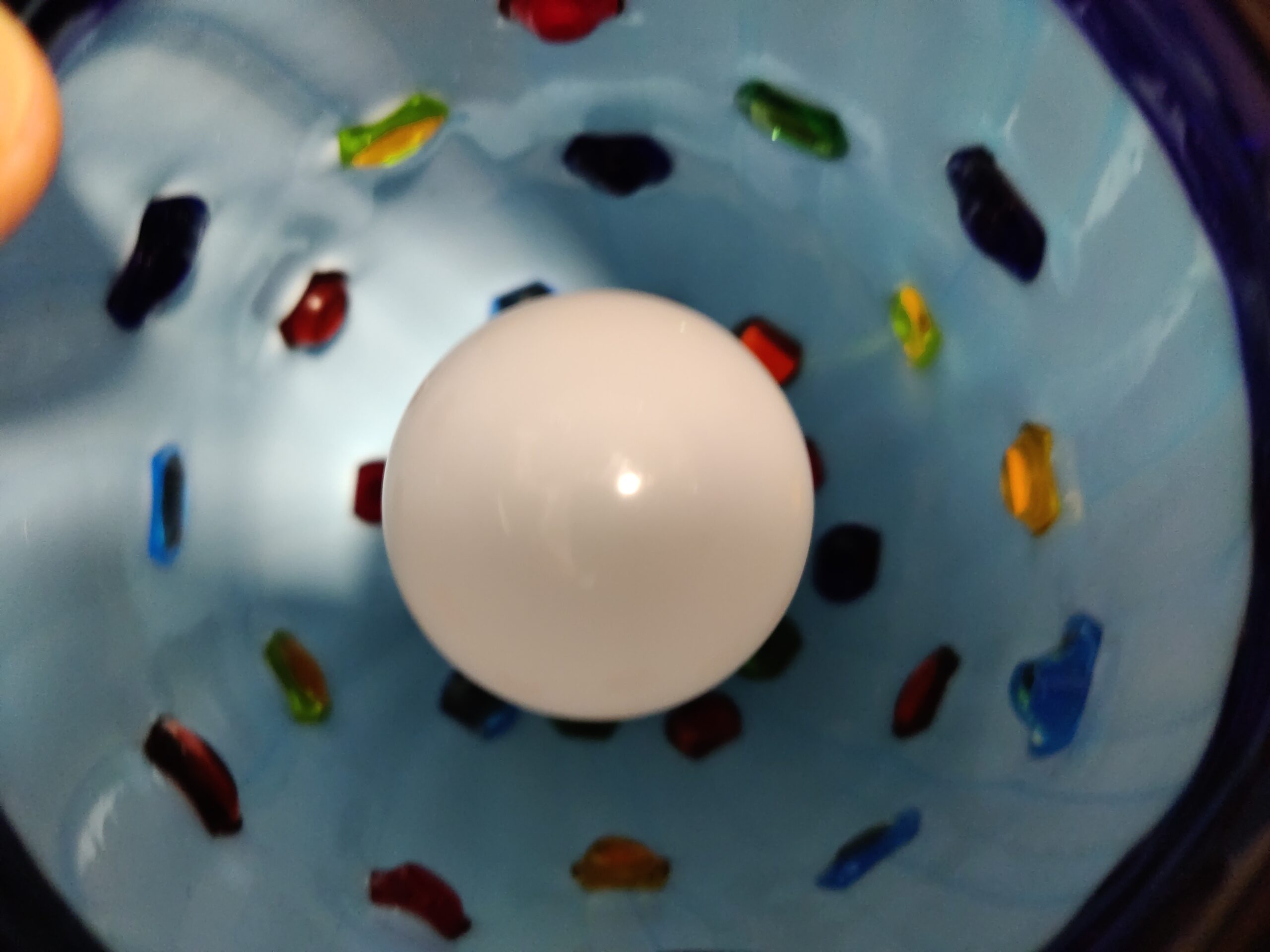 Diese wunderschöne Lampe ist komplett aus Glas und hat bunte Glassteine eingearbeitet. Durchmesser: 10 cm, Höhe 15 cm