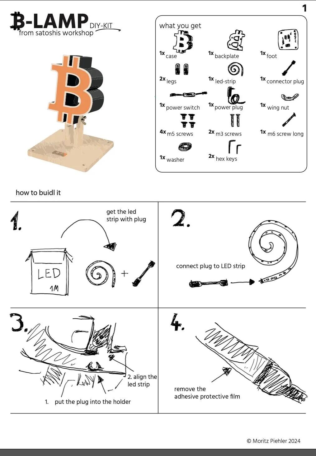 Handgemachte Bitcoin LED Lampe mit Schalter (Kit, noch 2 Stück)