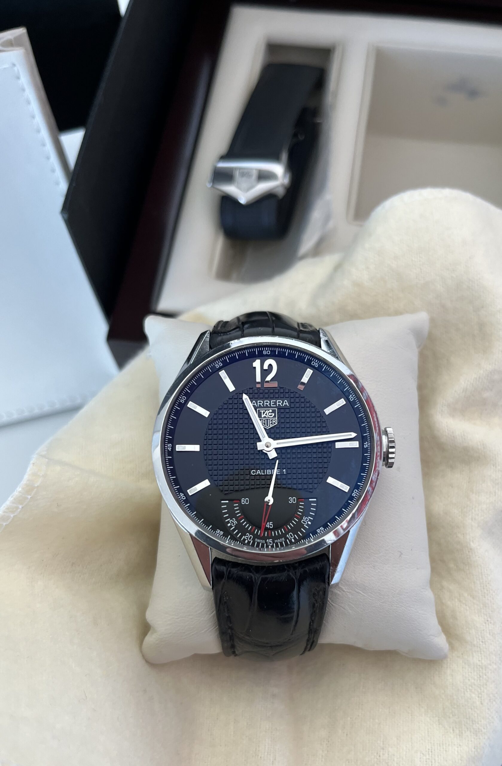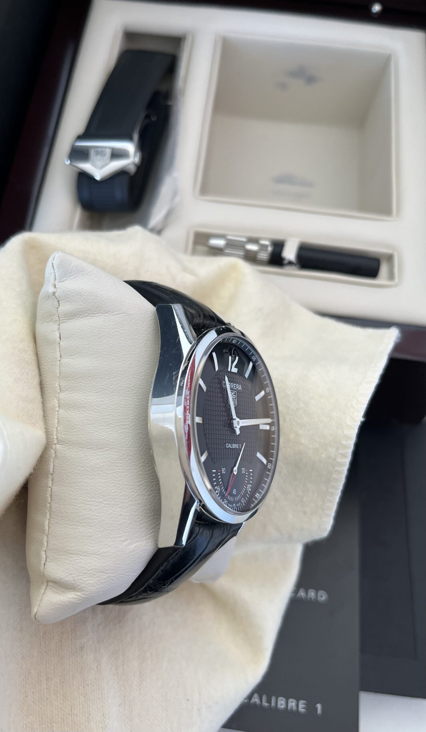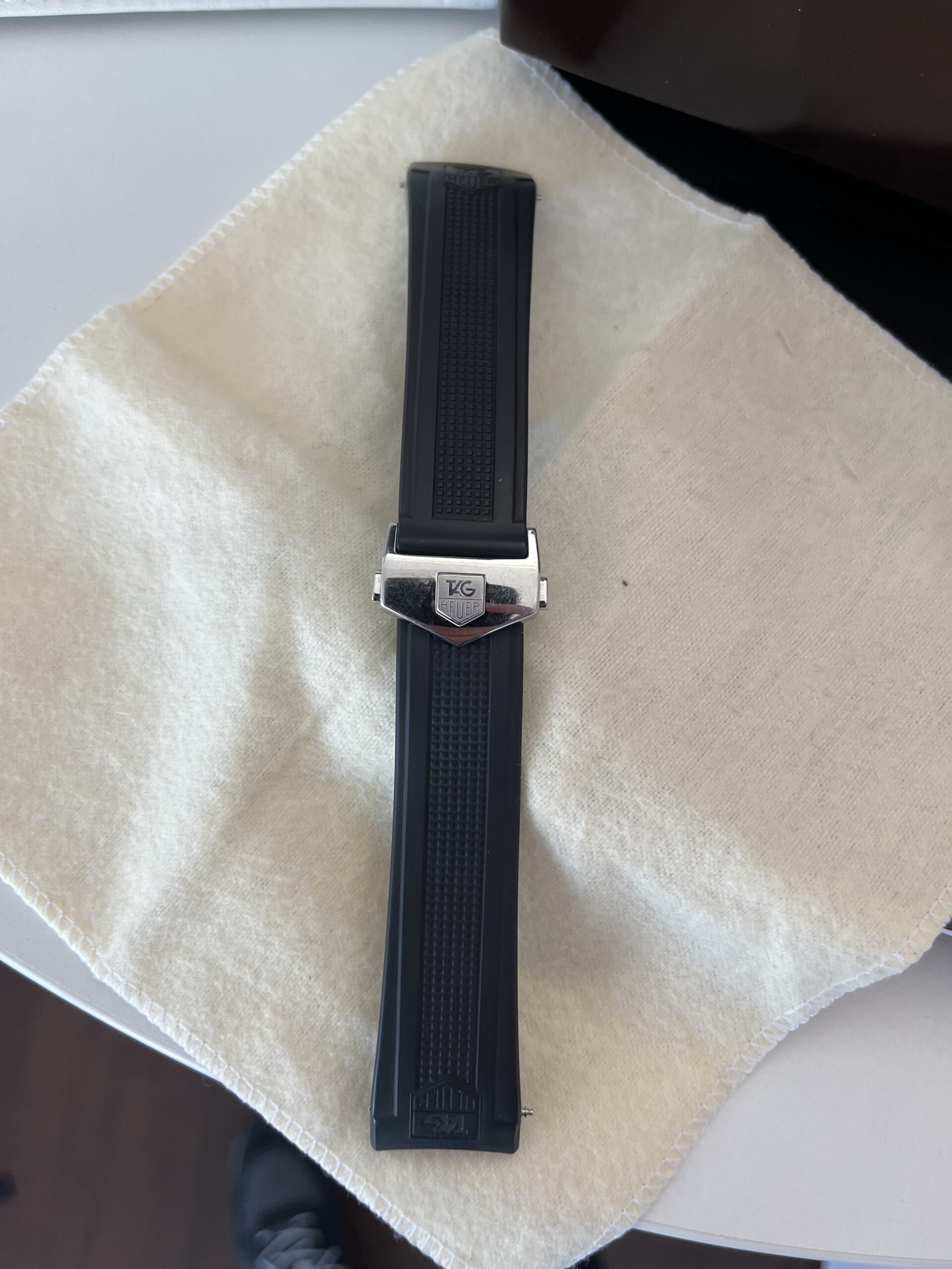 Im Verkaufsumfang ist die Original Box, das Tag Heuer Echtleder- sowie Kautschuk Armband, die Instructions und die Garantiekarte enthalten.